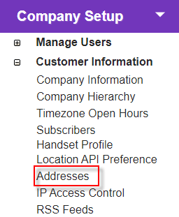 The following information applies to Customer Administrators only and describes limited 'Addresses' functionality. Click here to view full information for Platform Administrators.