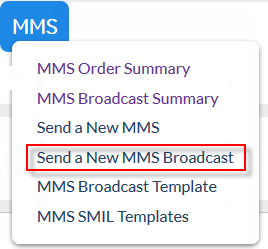 Click 'Send a New MMS Broadcast' to open the 'New MMS Broadcast' screen and compose a new order.