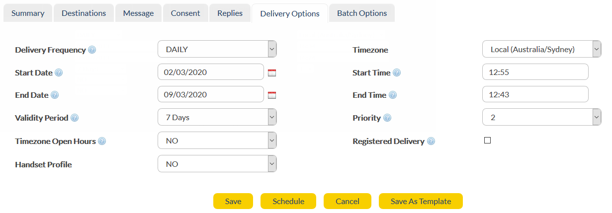 This feature allows you to control the rate at which messages are delivered. You may want some messages delivered at the same time, and others may need to be staggered. For example, if your message contains a prompt to call a phone number, you may want to stagger delivery so that your phone system is not overloaded with calls.