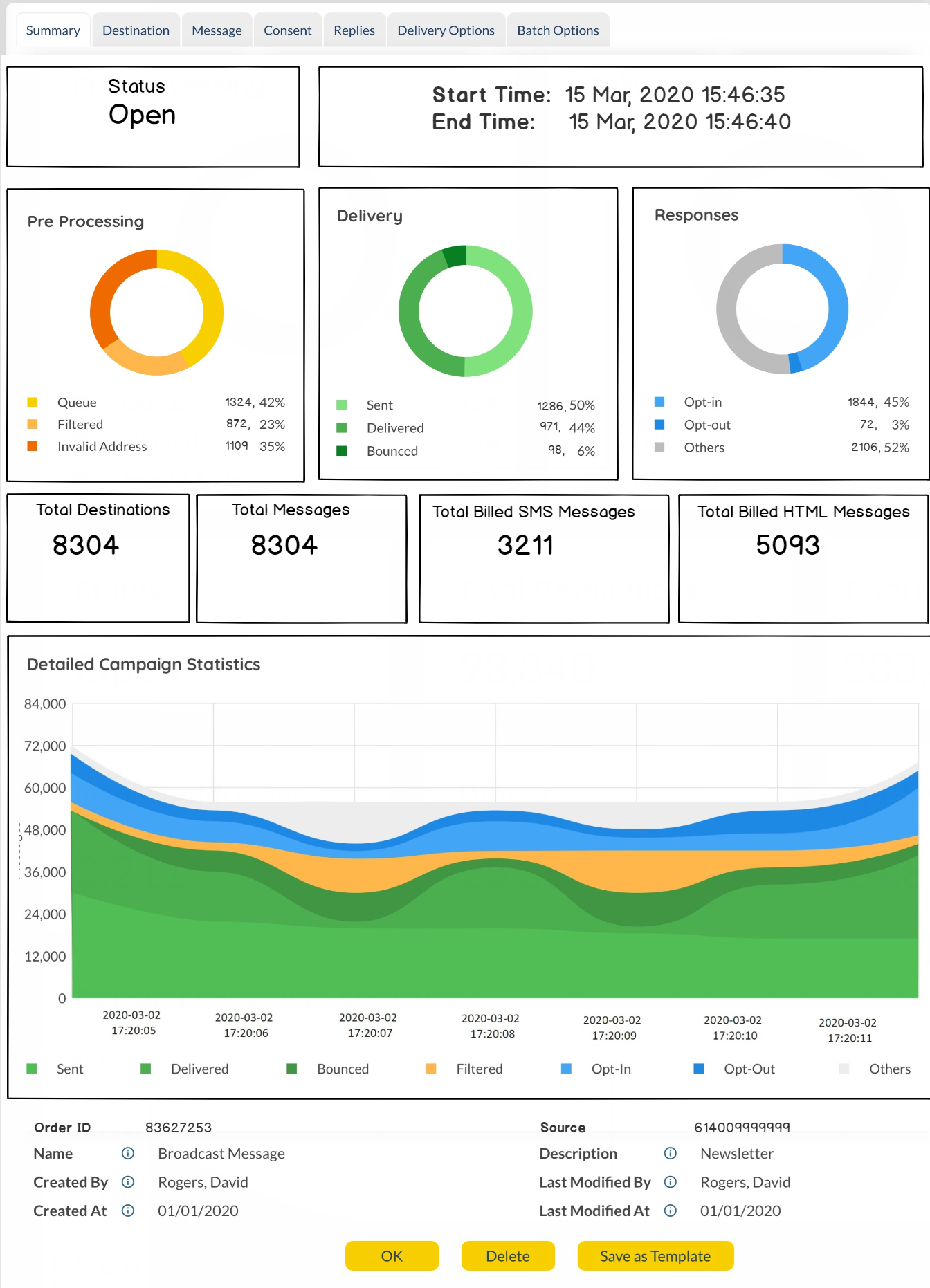 The Campaign Statistics Tab within the Broadcast Order Summary page, a holistic graph of all Orders is displayed.