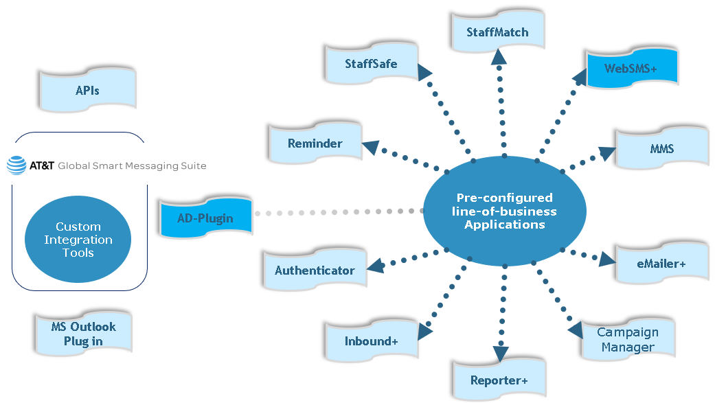 The communication of plug-in with AT&T Global Smart Messaging Suite powered by Soprano is based on LDAP protocol. Active Directory Plug-in (LDAP) is the capability implemented in AT&T GSMS, for querying and retrieving information from a customer’s directory. It allows an easy replication of organization hierarchy, imports and automatically updates recipients’ information from your company’s address book into AT&T GSMS, while reducing time and errors that are caused by manual updates.