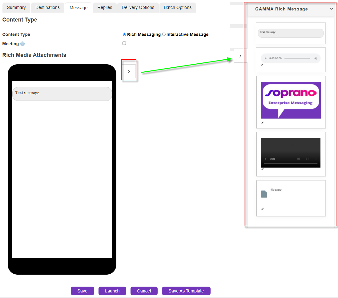 Rich Media messages can be chosen when Users are required to send messages with one or more media types simultaneously.