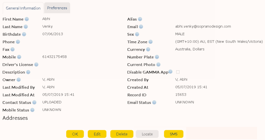 Click on the desired contact name in the Contact Summary to display the contact details.