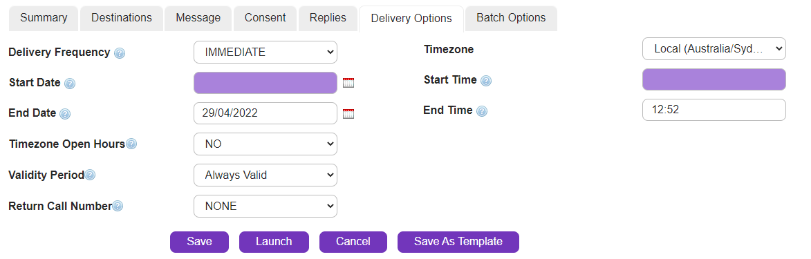 This field can be pre-populated by flagging the 'Registered Delivery' check box in Company SMS Preferences (Customer Administrators only).