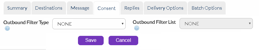 •BLACKLIST - Messages will only be sent to numbers that do not appear in the chosen list (see 'Outbound Filter List' field). If you need to comply with Spam Act requirements then you would most likely choose 'Blacklist'. From the drop-down list, select the blacklist or whitelist list you wish to use as your filter. Multiple lists can be configured within GSMS to enable the user to choose the most appropriate one.
