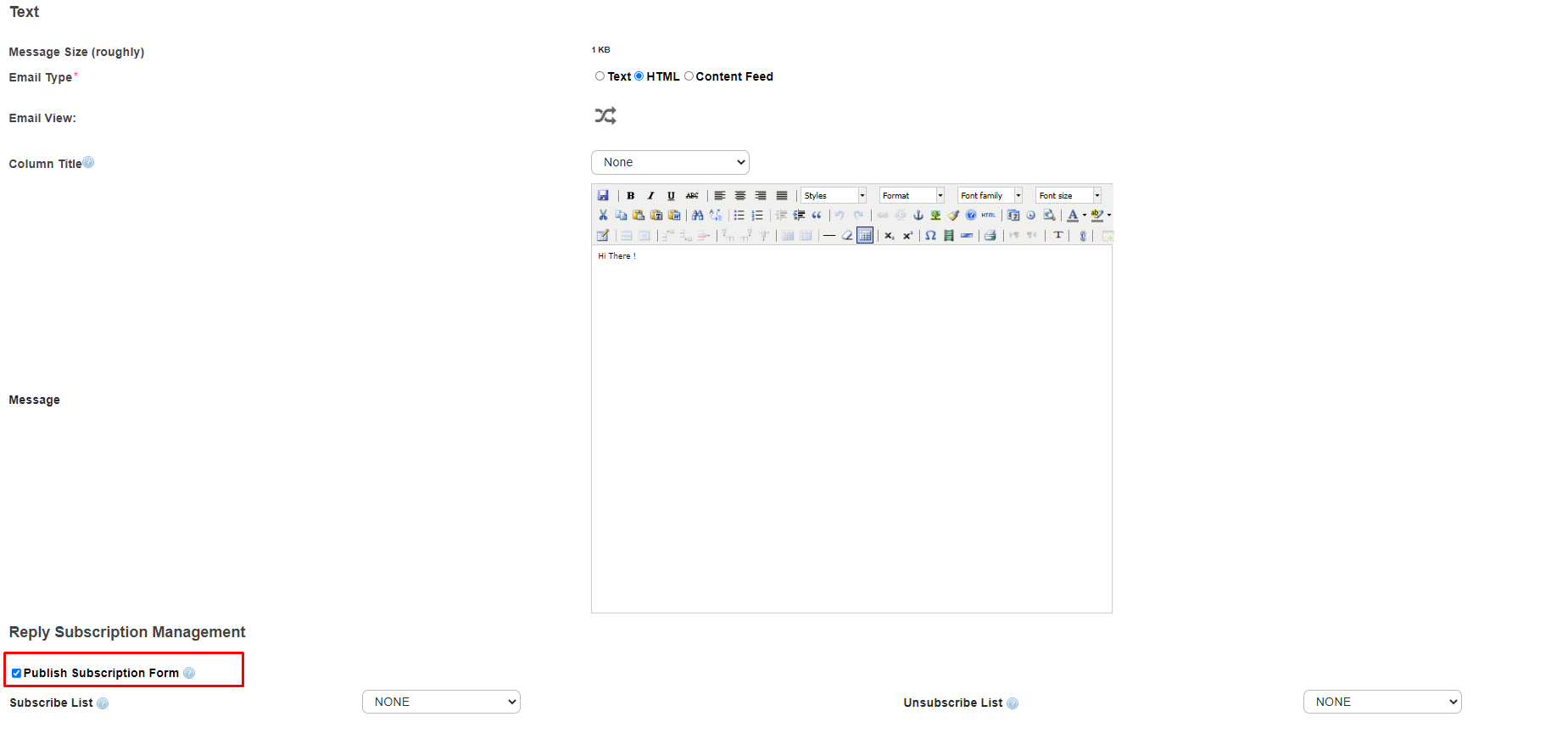 Select from the drop-down menu. Recipients who click 'Subscribe' link will be added to this list. |