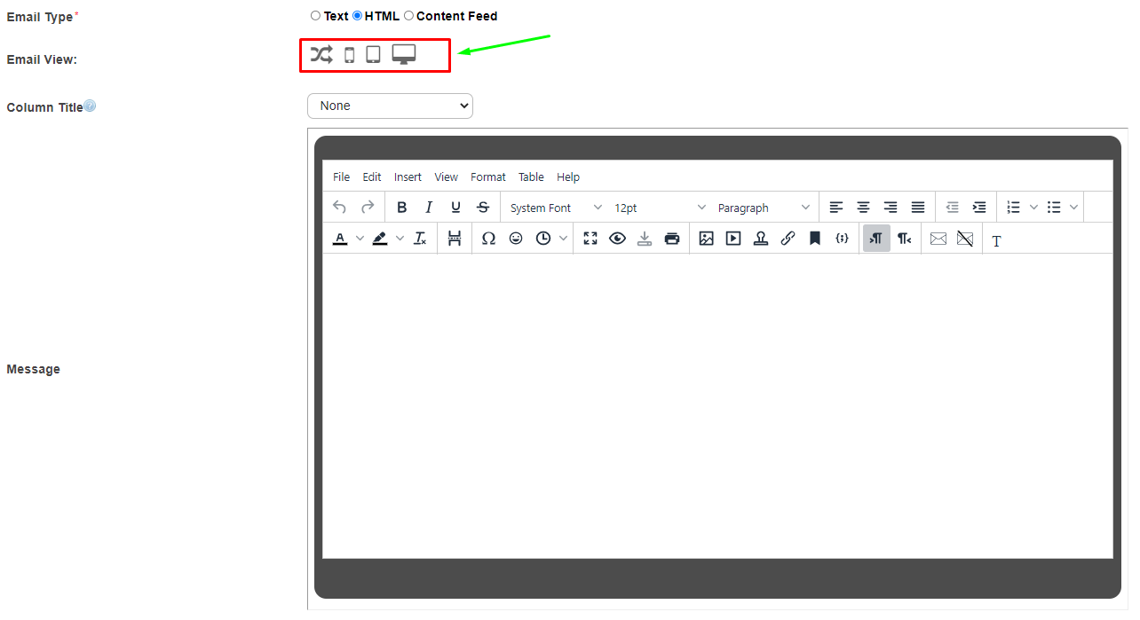 Choose which type of email you wish to send. You can choose to send either Plain Text, HTML or Content Feed emails.
