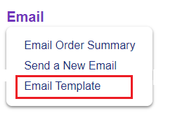 The 'Email Template' screen lists all the eMailer orders that have been saved as templates.