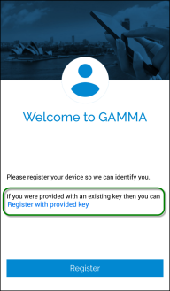 4. Register : You will then be prompted to either register using an SMS, or using a pre-provisioned key if you have received one via email. Select the applicable option.