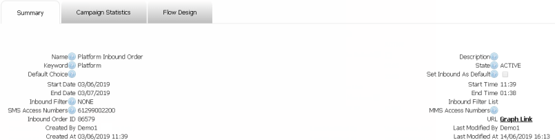 The Inbound number for MO SMS i.e. the mobile number customers will send their choice to in order to trigger the order and any related responses.