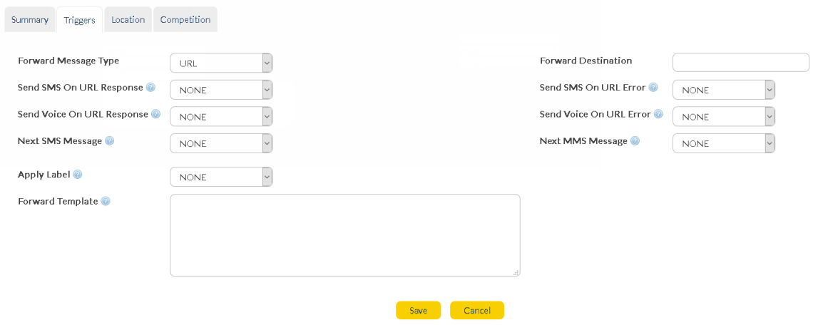Choose an SMS response from the drop-down list. This will be triggered upon a successful response from the specified URL in 'Forward Destination' field.