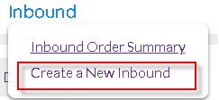Click 'New Inbound' to open the 'New Inbound' screen and compose a new order. |