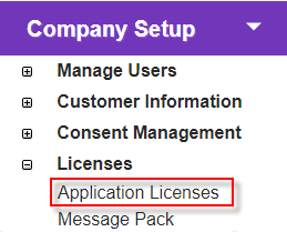 Click the 'Application Licenses' link in 'Company Setup > 'Licenses' to open the 'Application License Summary' screen.