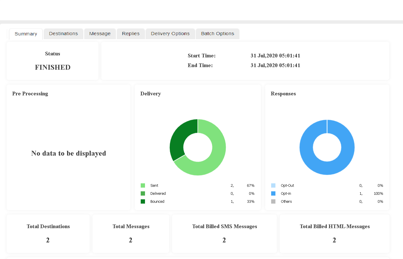 Users can now view an instant Report of the A2P messages sent via the AT&T GSM application. When sending a AT&T GSM A2P broadcast, once the message has been sent, the user is presented with a broadcast reporting/statistics page.