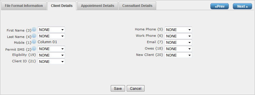 To provide flexibility for file formatting, Reminder list (i.e. CSV) files may be mapped according to the following. The only mandatory field that can not be changed is the mobile number, which must be in the first column of the CSV file.
