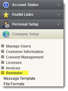 Click the 'Reminder' link in the 'Company Setup' menu to open the 'Reminder' setup screen.