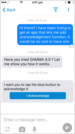 So if you wish to receive a specific acknowledgment for your A2P message, you can enable 'Require Acknowledgment'. If you want to ensure that the important messages are not missed by the recipients, turn on the 'Repeat Alert'. Active acknowledgment messages and Repeat Alerts will always be displayed on the top of the screen.