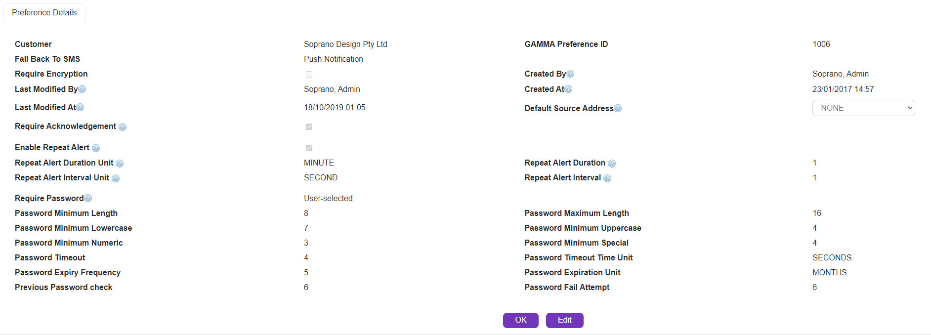 Administrator can set default values for Repeat Alerts and Require Acknowledgment in Company GAMMA Preference settings. Values defined in below settings will appear as defaults in Delivery Options while sending an A2P message. By default, Repeat Alert and Require Acknowledgment is disabled.