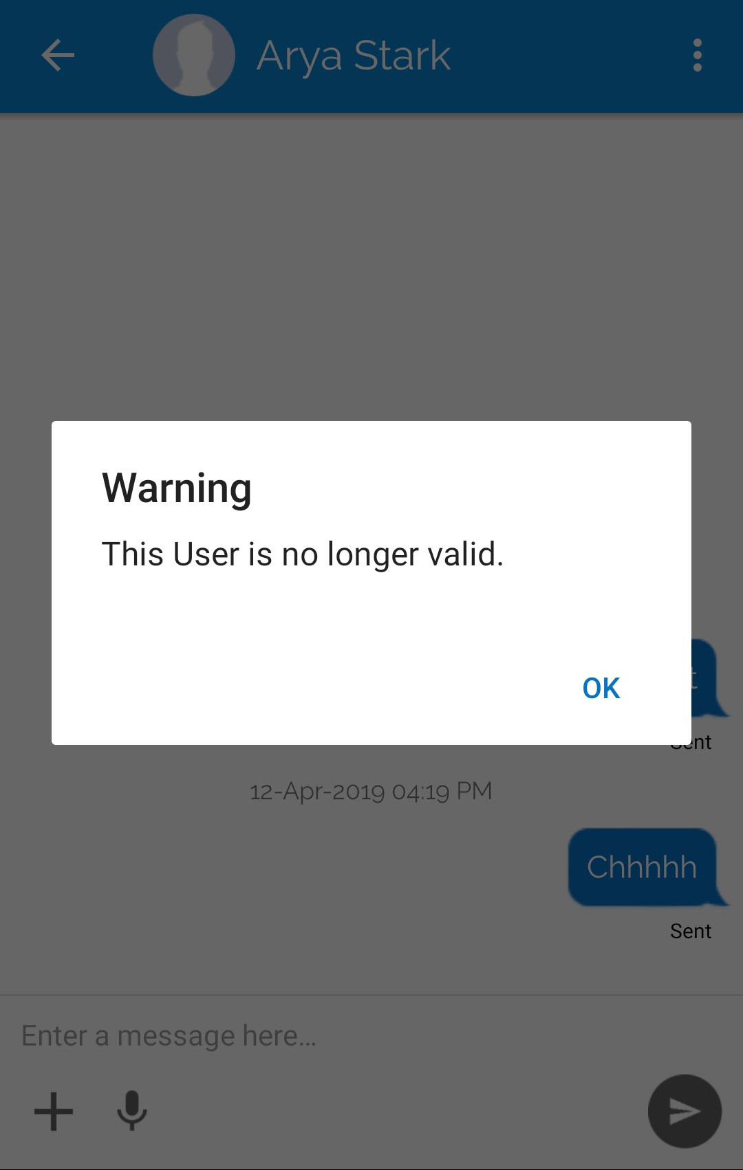 ➢All the deleted user's messages, contacts, public and private keys will be completely wiped. So, if an admin decides to "re-create" the deleted user, the user must uninstall ans instal their app again. Note: Even if the deleted user is re-enabled in by the Admin, Users can never retrieve their old conversations. |