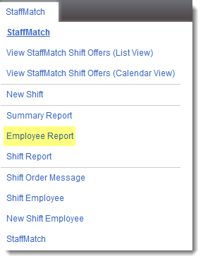 Click 'Employee Report' link to open the 'StaffMatch Employee Report' screen.