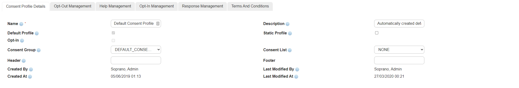 Clicking on a consent profile name on the Consent Profile Summary screen will display the existing attributes of that profile, and allow you to edit them if necessary.