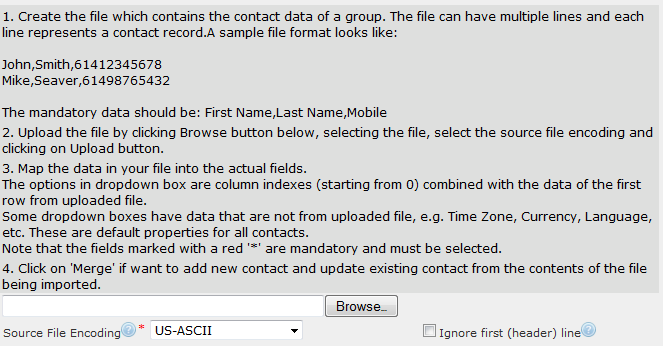 Click 'Import' to upload a group of contacts into AT&T GSMS.
