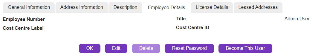 The user's email address (note: this cannot be edited here. If you wish to change the username, you must update your email address, which will in turn update the username. The username may be up to 100 characters in length, including the user's email domain name).