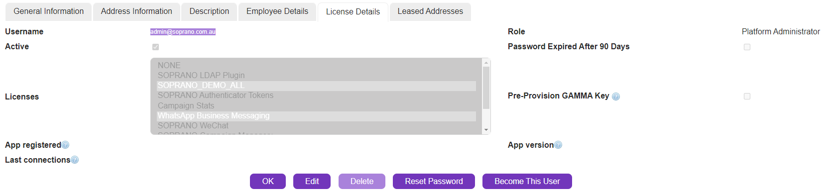 The 'License Details' section is limited to be visible to those with Customer Administrator rights only.
