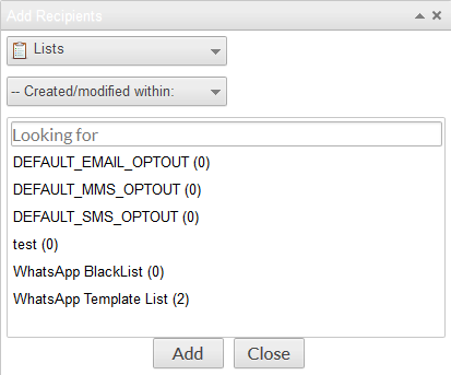 Please Select - Drop-down shows the option of Lists, Contacts & Groups.