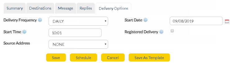 e.g. if 'Delivery Frequency' is 'MONTHLY' and 'Start Date' is '01/09/2012', the message will be delivered on the first day of each subsequent month (01/10/2012, 01/11/2012, 01/12/2012 etc).