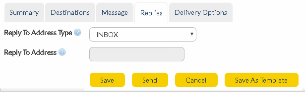 Select from the drop-down menu for each message type. If a recipient replies to your message, this is the method by which it will be received.
