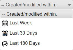 Created/Modified within - Allows three options - Last week, Last 30 days & Last 180 days.
