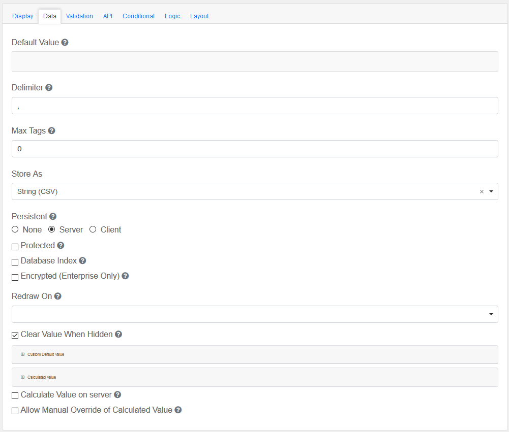 Hidden : Add hidden components within the Tags Field