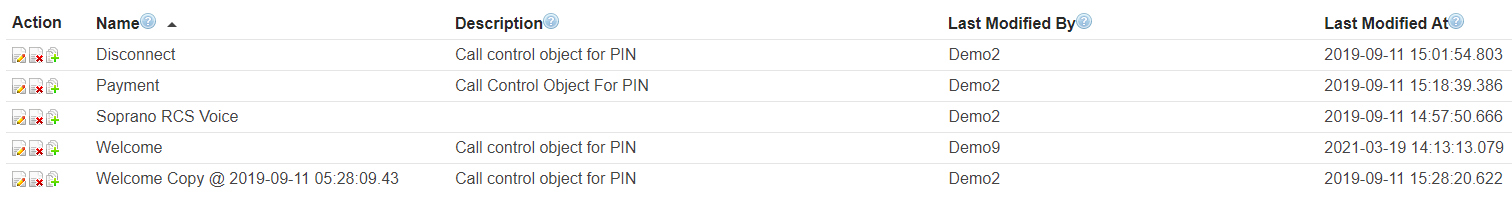 •Click New button to create a new Call Control Object or click on existing templates to edit them. We've explained steps to create a new Call Control Object with all call control actions. User may customize the Call Control Objects as per their needs.