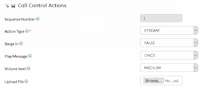 Once you have added the fields as explained above, hit Save icon on the Call Control Actions menu-bar. Call Control Action with Stream gets saved: