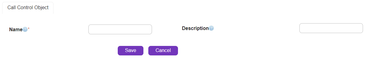 •Once you are on Call Control Object creation page, enter Name and Description of the Call Control Object and click Save.