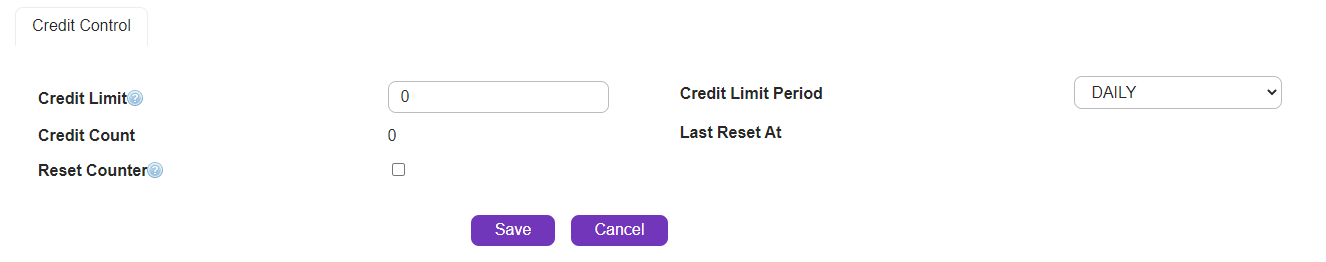 Manage user credit control details from here. |