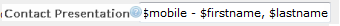 e.g. if '$first %last' values are saved in the 'Contact Presentation' field, the values saved in 'First Name' and 'Last Name' fields will be displayed instead of a mobile number in any related reports.