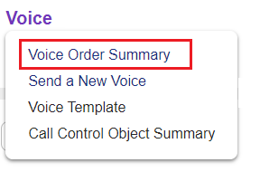 Navigate to the menu Voice (main nav) > Voice Order Summary |