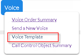 Click the 'Voice Template' link in 'Personal Setup > Templates' to open the 'Voice Order Template Summary' screen.