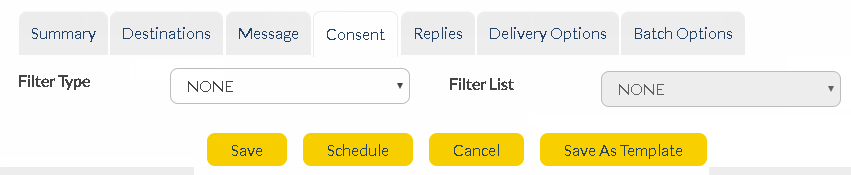 Choose pre-existing destination(s) for your message. Select 'Lists', 'Contacts' or 'Groups' from the drop-down list. Click here for information about lists, contacts and groups.