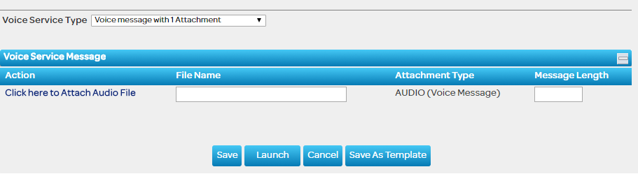 In order to send a voice order using attachment, select Voice with 1 Attachment as Voice Service Type. Select 'Click here to Attach Audio File' to select an audio file.
