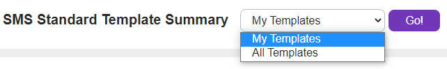 This allows users to filter templates based on two views namely "My Templates" or "All Templates". The User has the option to view the complete set of Standard SMS Templates or, if their license permission level allows them to create templates, these can be viewed separately.