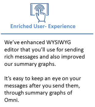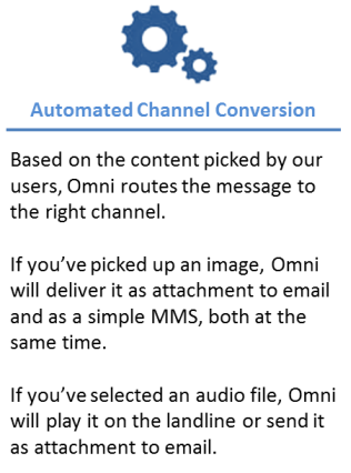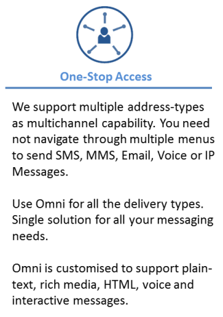Omni offers ease of standard messaging mechanism along with intelligence of multi-channel delivery. Intelligence of Omni platform utilizes existing SMS, MMS, IP Message, Email & Voice capabilities to build a one-stop solution for all users. Let's look at the benefits Omni brings in to your enterprise.